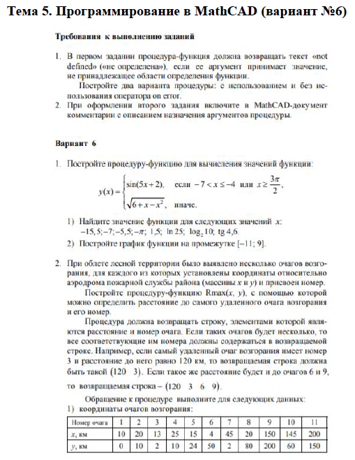 5. Программирование в MathCAD (вариант №2)