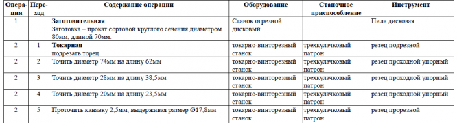 Фрагмент техпроцесса обработки "Ось":