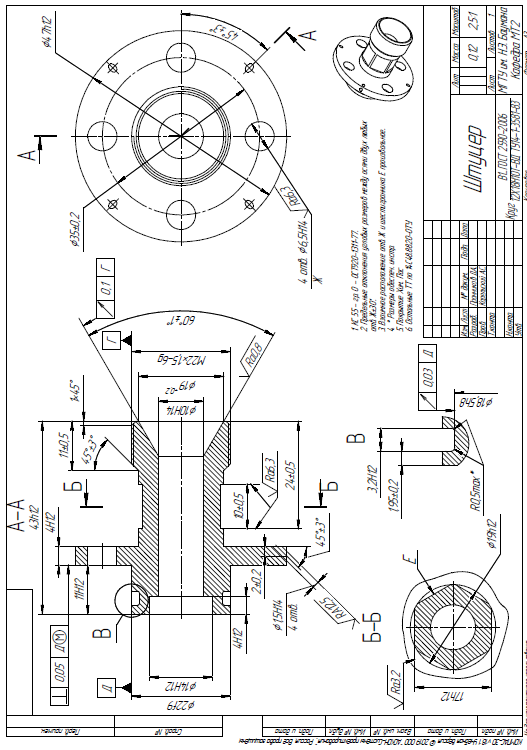 Необходимо разработать техпроцесс для изготовления детали под названием «Штуцер» из материала 12Х18Н10Т. Масса детали 0,12 кг. Габаритные размеры 47х43 мм.