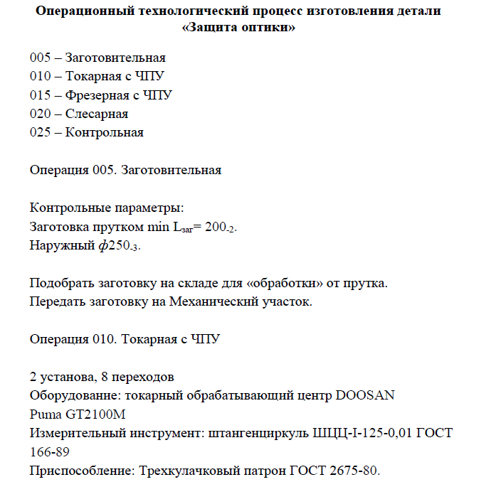 Операционный технологический процесс изготовления детали «Защита оптики»
