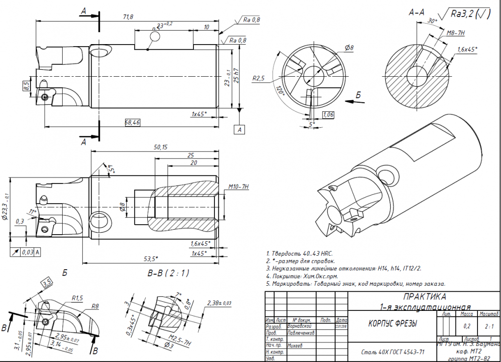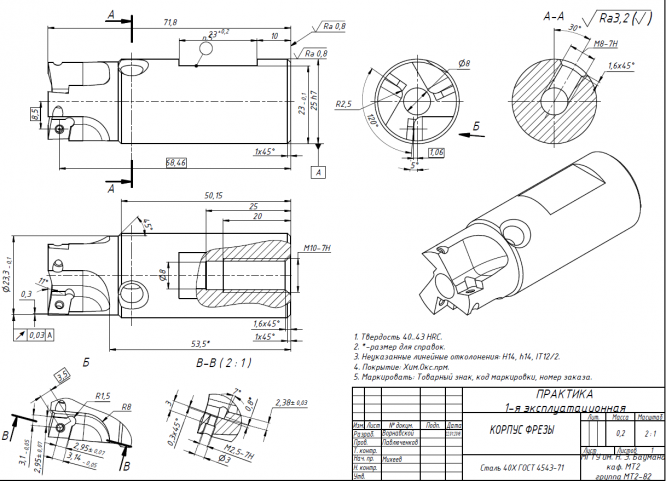 Для студентов МГТУ им. Н.Э.Баумана по предмету ПрактикаОтчет по практике (ООО "Белгородский завод специнструмента" - Державка, Корпус фрезы)Отчет по практике (ООО "Белгородский завод специнструмента" - Державка, Корпус фрезы)