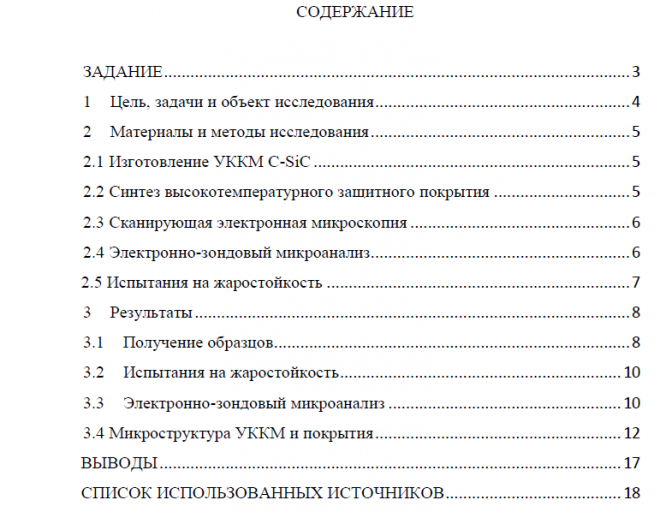 Исходя из обзора литературных источников, целью данной работы является выбор состава высокотемпературного покрытия, разработка технологии его нанесения на керамический композиционный материал C/SiC и исследование защитного действия покрытия.