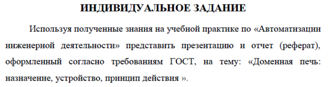 Отчёт по практике: Отчет по учебной практике (Доменная печь: назначение, устройство, принцип действия)