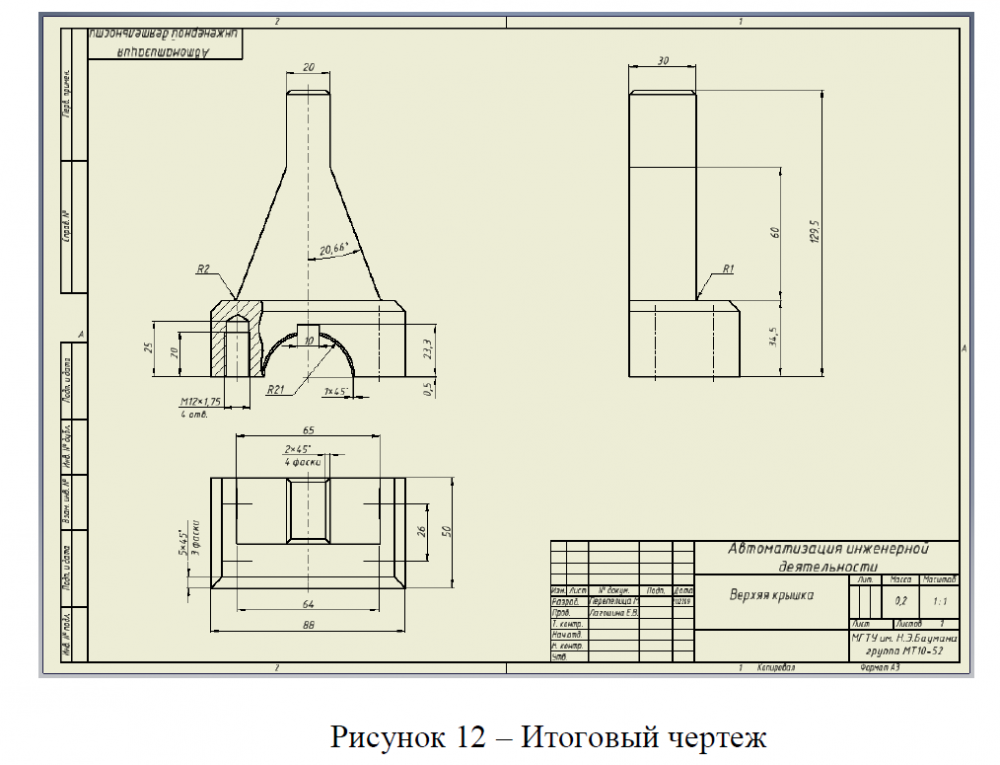 Для студентов МГТУ им. Н.Э.Баумана по предмету ПрактикаОтчет по учебной практике (Деталировка и сборочный чертеж на основе необразмеренного чертежа - Верхняя крышка)Отчет по учебной практике (Деталировка и сборочный чертеж на основе необразмеренного чертежа - Верхняя крышка)