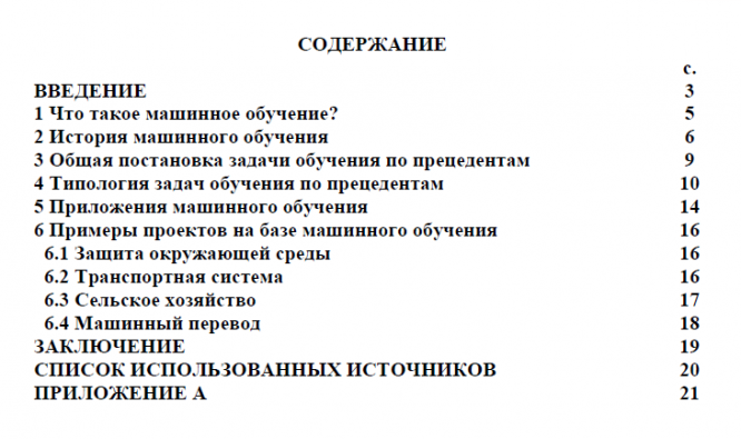 - формирование реферата по выбранной научной теме «Машинное обучение»;