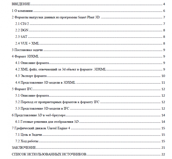 Цель: изучить процесс переноса геометрии 3D модели и её атрибутов в рамках программного пакета SmartPlant, реализованного на предприятии и соответствующего программного обеспечения. Дополнить разработанное на предприятии ПО, с целью поддержки переноса атрибутивных свойств из программы 3D моделирования SmartPlant3D. Изучить возможные форматы выгрузки 3D данных из программы SmartPlant3D. Изучить формат 3DXML, оценить применимость данного формата в контексте задачи представления в Web-браузере 3D-модели, реализованной в SmartPlant3D.