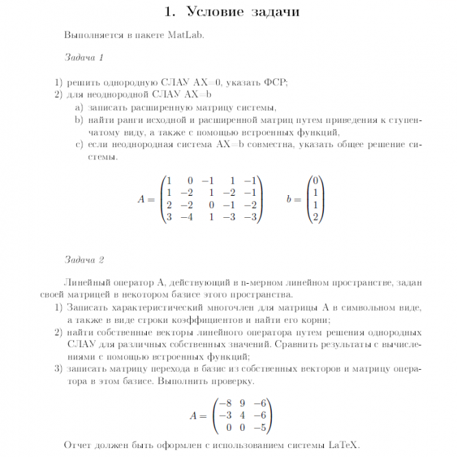 Для студентов МГТУ им. Н.Э.Баумана по предмету ПрактикаОтчет по ознакомительной практике (Решение однородной СЛАУ; линейный оператор A)Отчет по ознакомительной практике (Решение однородной СЛАУ; линейный оператор A)