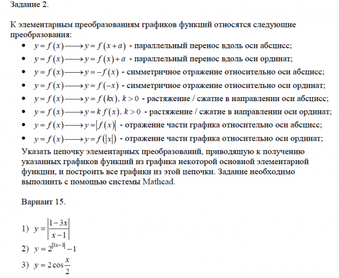 Отчёт по практике 2: Отчет по учебной практике (Элементарные преобразования графиков функций) вариант 15