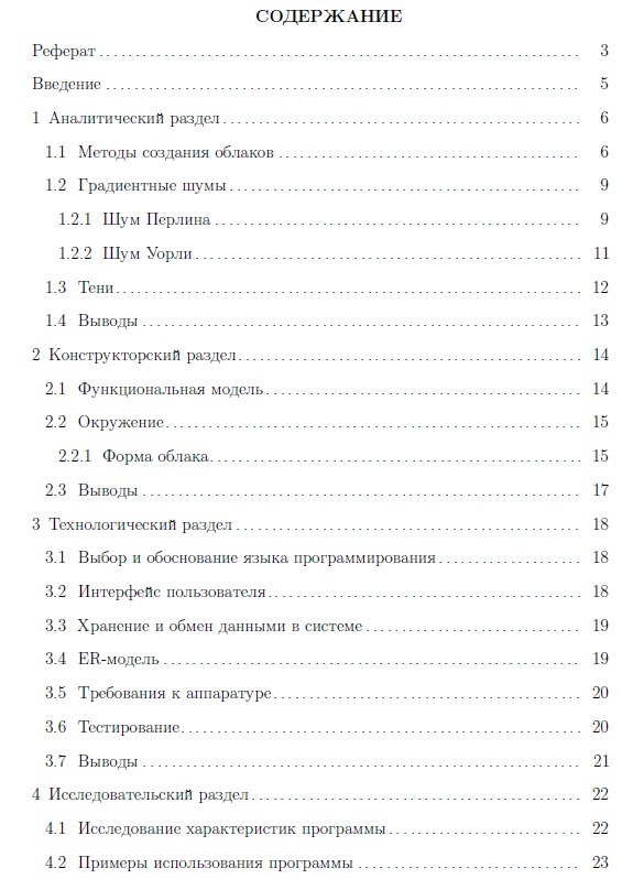 В данной работе рассмотрены алгоритмы визуализации облаков, алгоритмы для генерации шумов, похожих на облако, а также тени.