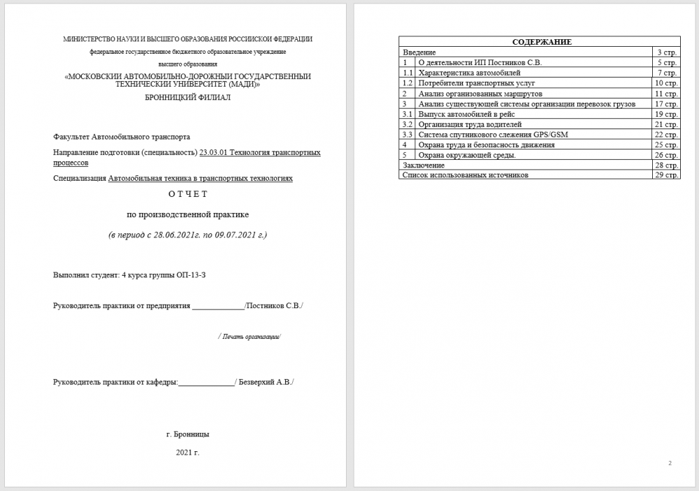 Для студентов МАДИ в г. Бронницы по предмету ПрактикаОтчёт по производственной практике на тему: Исследования перевозок в ИП Постников С.В.Отчёт по производственной практике на тему: Исследования перевозок в ИП Постников С.В.