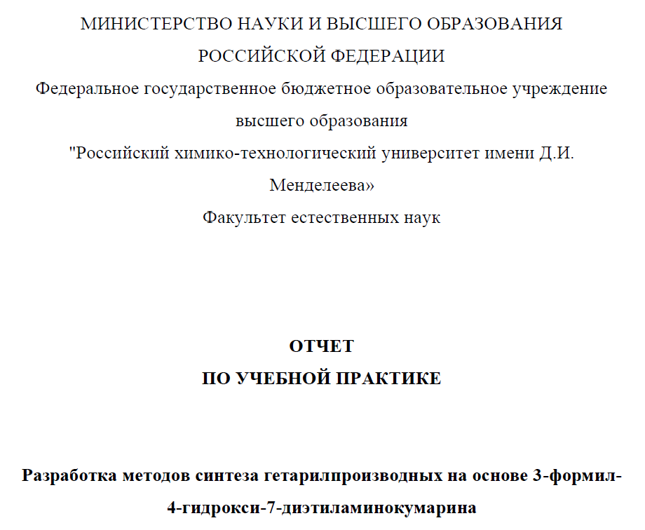 Готовый отчёт по практике для химиков-магистрантов 1 курса на 90 баллов