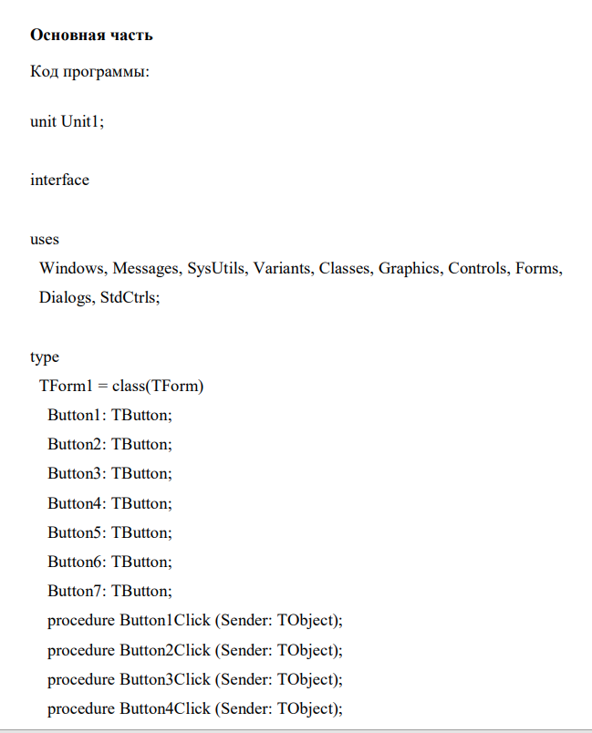 Главная » Учебные материалы » Практикум по программированию » Отчёты по практике » МГТУ им. Н.Э.Баумана » 2 семестр » Отчёт по практике №1 (Разработка графических приложений в среде Turbo Delphi 2007)