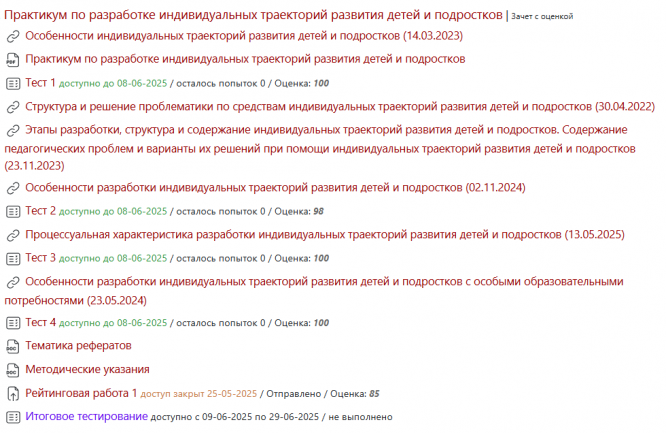 Ответы к зачёту Тесты 1-4: Практикум по разработке индивидуальных траекторий развития детей и подростков (Тесты 1-4)
