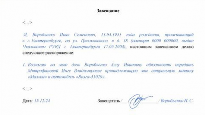 - содержание волеизъявления завещателя: кому и какое имущество завещается; - дата и место составления завещания;