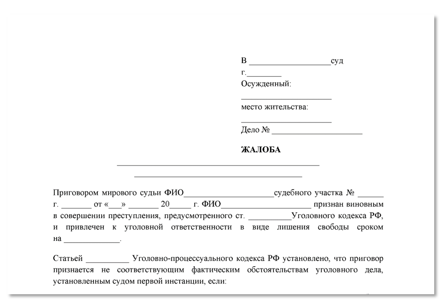 … жалоба – это документ, который подают в вышестоящий суд, чтобы обжаловать решение суда первой инстанции; представляет собой заявление, в котором не согласная с решением сторона указывает на ошибки, допущенные, по ее мнению, судом первой инстанции, и обстоятельства дела, которые были проигнорированы