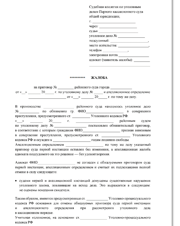 … жалоба подается в вышестоящий суд, чтобы обжаловать решение суда первой инстанции; этот вид жалобы проверяет правильность применения права в рассматриваемом решении или выявляет нарушения процессуальных норм, он может быть использован, когда решение суда апелляционной инстанции также не удовлетворяет стороны