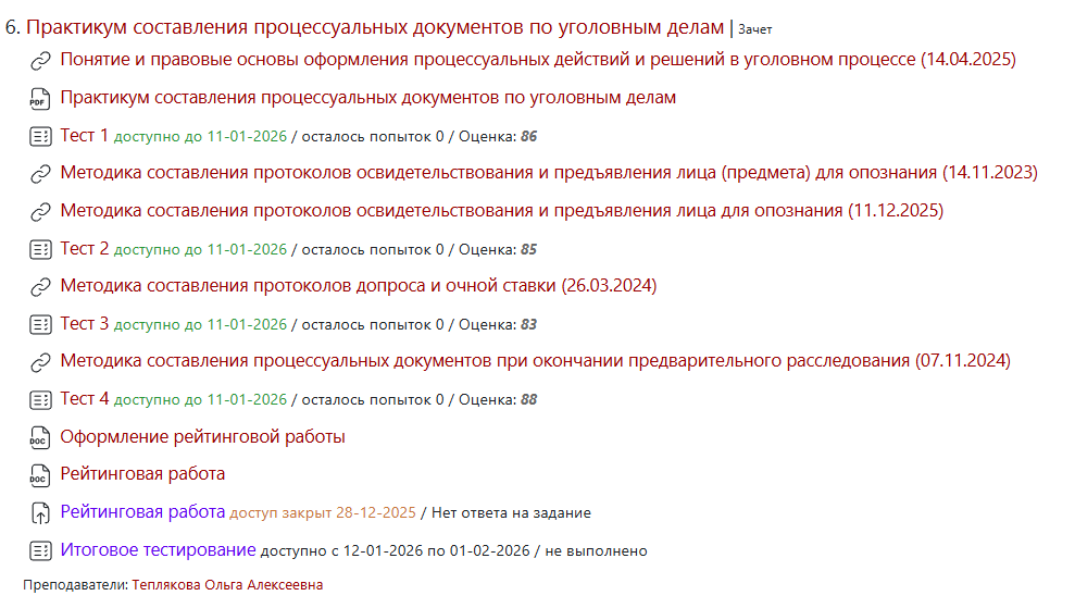 Ответы к зачёту Тесты 1-4: Практикум составления процессуальных документов по уголовным делам (Тесты 1-4)