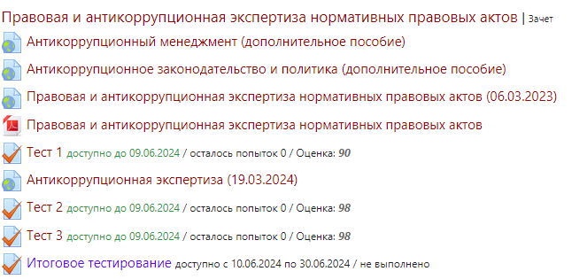 Правовая и антикоррупционная экспертиза нормативных правовых актов Витте Ответы на тесты 1-3