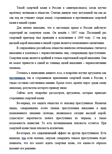 Реферат: Эссе на тему: Смертная казнь в России: за и против