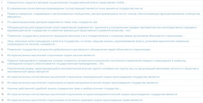 Ответы к экзамену КМ-1: Основы теории и истории государства и права. Тестирование