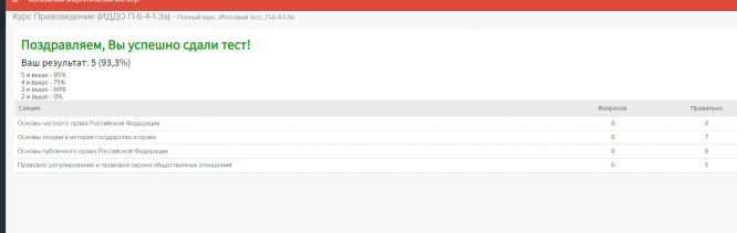 Ответы к экзамену Итоговый тест: Предмет Правоведение