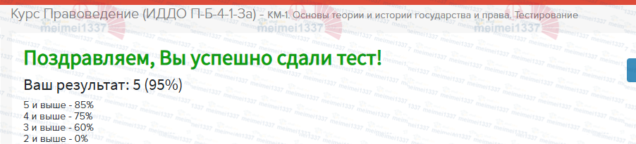 Для студентов ИДДО НИУ «МЭИ» по предмету ПравоведениеКурс Правоведение - КМ-1. Основы теории и истории государства и права. ТестированиеКурс Правоведение - КМ-1. Основы теории и истории государства и права. Тестирование