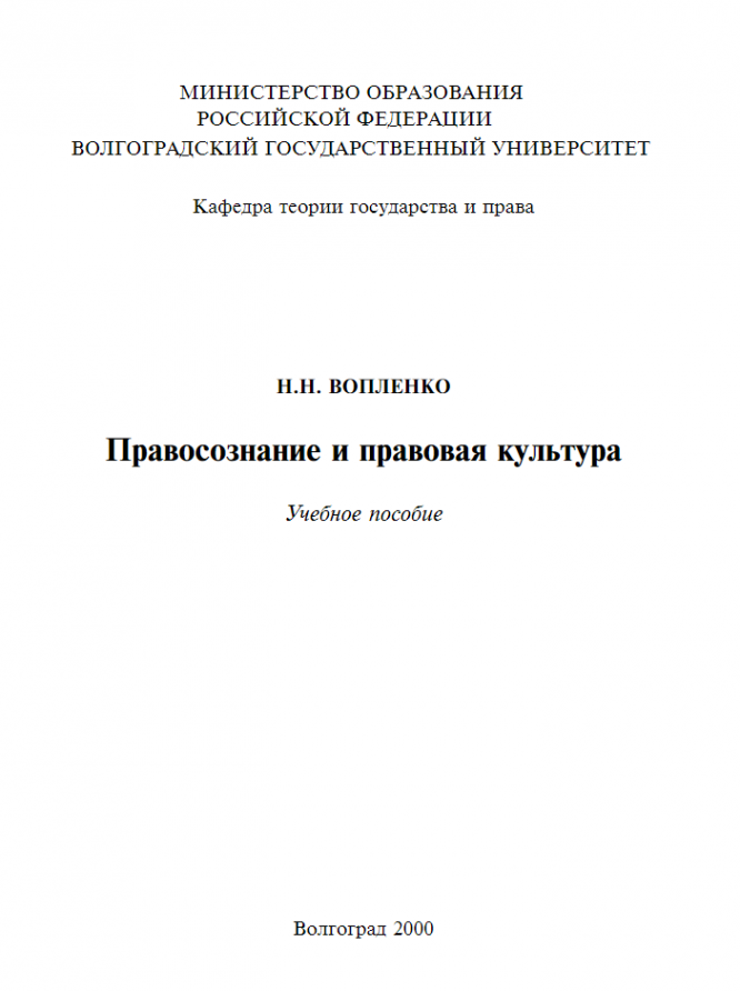 Главная » Учебные материалы » Правоведение » Книги » МГТУ им. Н.Э.Баумана » Несколько классов/семестров » Учебное пособие - "Правосознание и правовая культура" - Вопленко
