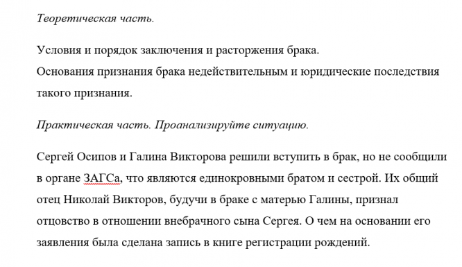 ДЗ: Семейное право вариант 15