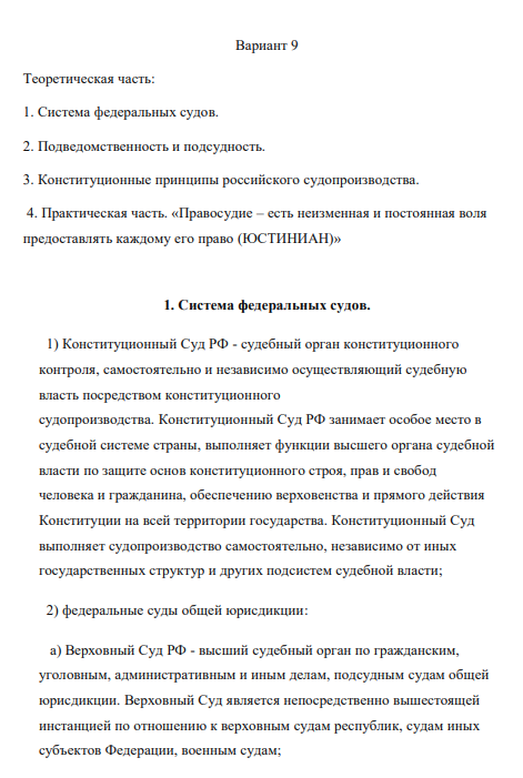ДЗ: Судебная власть в Российской Федерации вариант 9