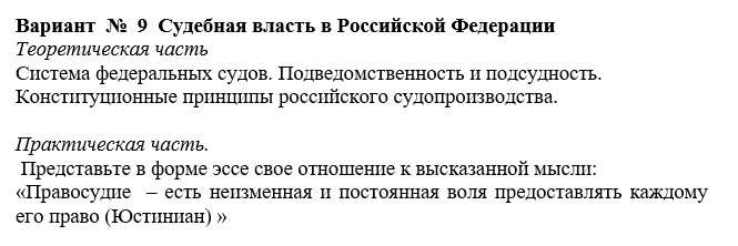 ДЗ: Домашнее задание на тему "Судебная власть в Российской Федерации" вариант 9