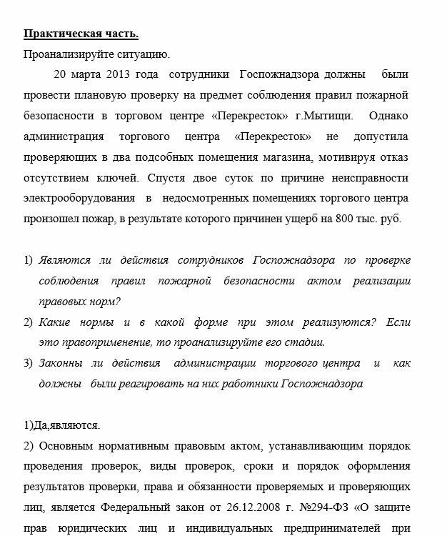 Являются ли действия сотрудников Госпожнадзора по проверке соблюдения правил пожарной безопасности актом реализации правовых норм?