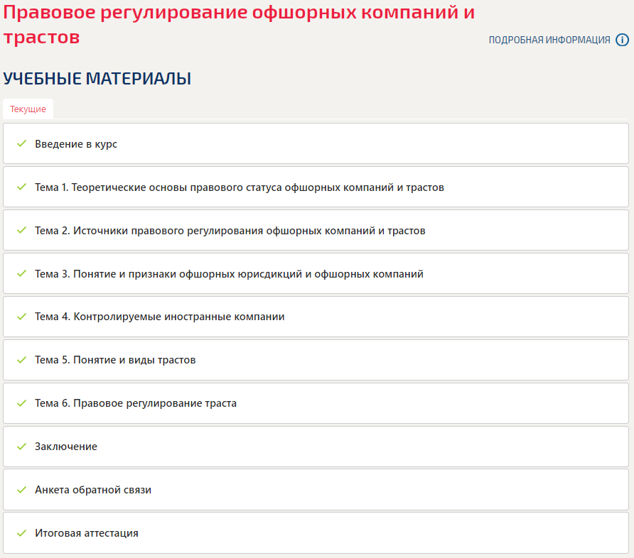 Правовое регулирование офшорных компаний и трастов (Темы 1-6, магистратура, итоговый тест, компетентностный)