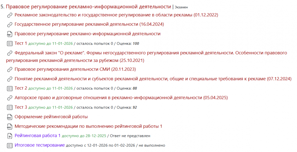 Правовое регулирование рекламно-информационной деятельности Витте Ответы на тесты 1-3