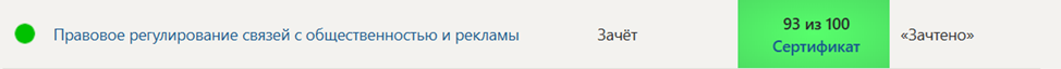 Ответы к зачёту Темы 1-6: Правовое регулирование связей с общественностью и рекламы вариант Итоговый тест