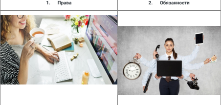 Соблюдать внутренние нормы учреждения в части безопасности, трудового распорядка и обращения с документами. Таблица — Система прав и обязанностей делопроизводителя и архивариуса .