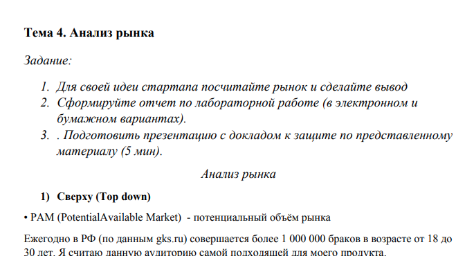 Для студентов МГТУ им. Н.Э.Баумана по предмету Предпринимательский практикумЛабораторная работа №5 (Анализ рынка)Лабораторная работа №5 (Анализ рынка)