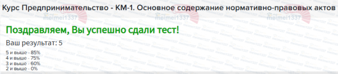 💯Ответы к КМ-1: Основное содержание нормативно-правовых актов (Курс Предпринимательство)🔥