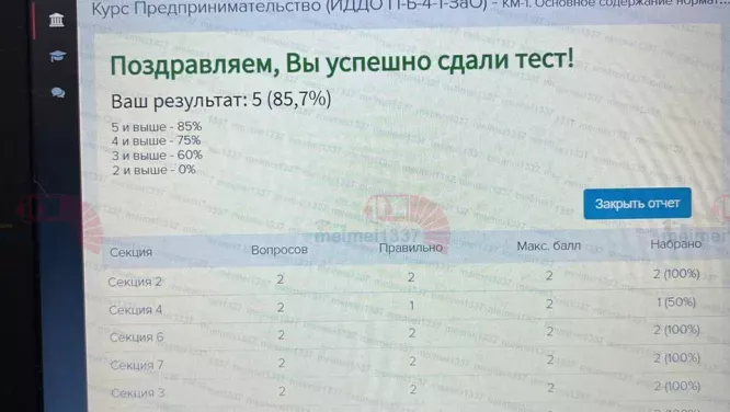 📝Помощь с тестом «КМ-1: Основное содержание нормативно-правовых актов» по курсу «Предпринимательство» в ИДДО – гарантия результата!☑️