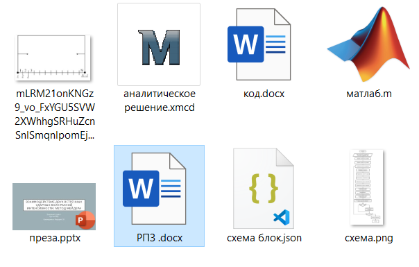 есть матлаб файл с рабочим кодом, презентация для защиты, ворд файл, блок схема, все картинки для разного количества времени, все формулы имеются.что находится в рар ![]()