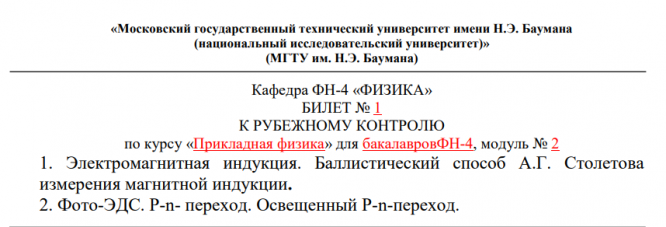 Для студентов МГТУ им. Н.Э.Баумана по предмету Прикладная физикаБилеты к РК2Билеты к РК2