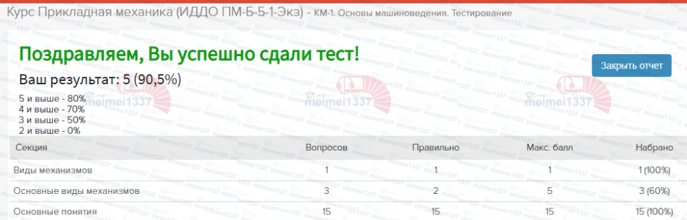 Курс Прикладная механика - КМ-1. Основы машиноведения. Тестирование - 90,5%