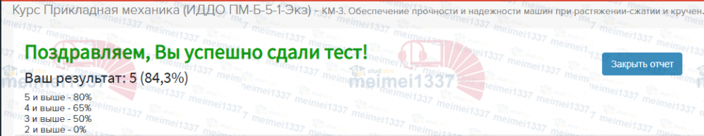 Для студентов ИДДО НИУ «МЭИ» по предмету Прикладная механикаКурс Прикладная механика - КМ-3. Обеспечение прочности и надежности машин при растяжении-сжатии и кручении. ТестированиеКурс Прикладная механика - КМ-3. Обеспечение прочности и надежности машин при растяжении-сжатии и кручении. Тестирование