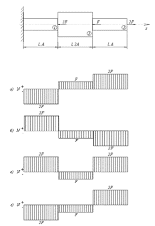 Какая правильная эпюра продольной силы N?