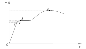 Какой механической характеристики материала соответствует точка 2 на диаграмме условных напряжений?