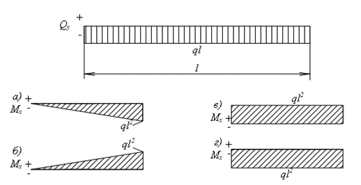 Как изменяется характер эпюры изгибающего момента Mx если эпюра Qy постоянна и отрицательна?
