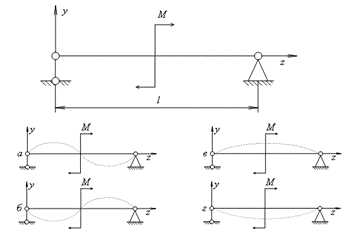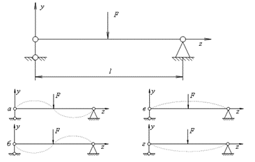 Укажите примерный вид изогнутой оси балки