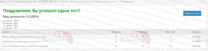Курс Прикладная механика - КМ-5. Конструирование и расчет деталей машин. Тестирование - 100%