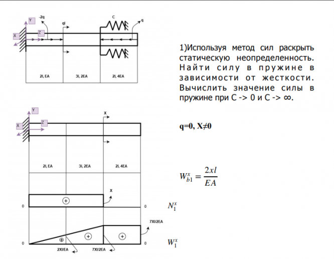 Используя метод сил раскрыть статическую неопределенность. Н а й т и с и л у в п р у ж и н е в зависимости о т жесткости. Вычислить значение силы в пружине при С -> 0