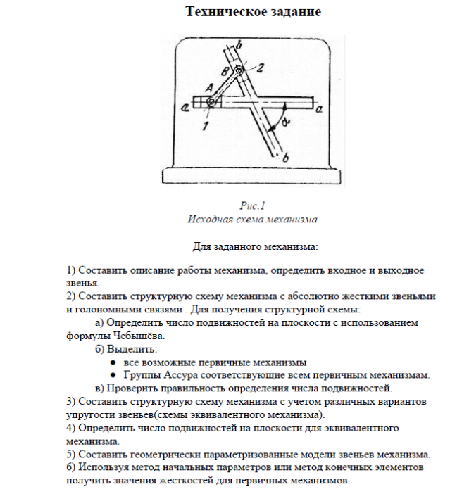 Составление структурной схемы механизма с абсолютно жесткими звеньями и голономными связями