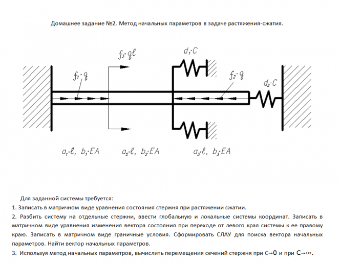 ДЗ: ДЗ2 Прикладная Механика. Метод начальных параметров в задаче растяжения-сжатия. Вариант 7 С ДВУМЯ ПРУЖИНАМИ вариант 7